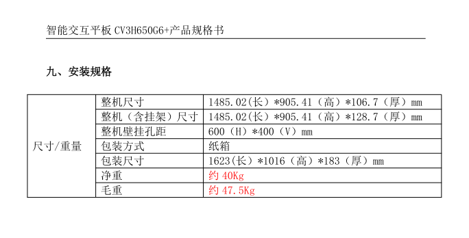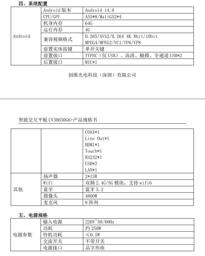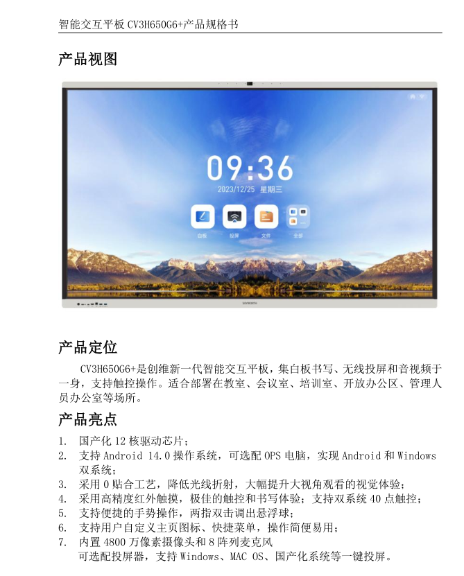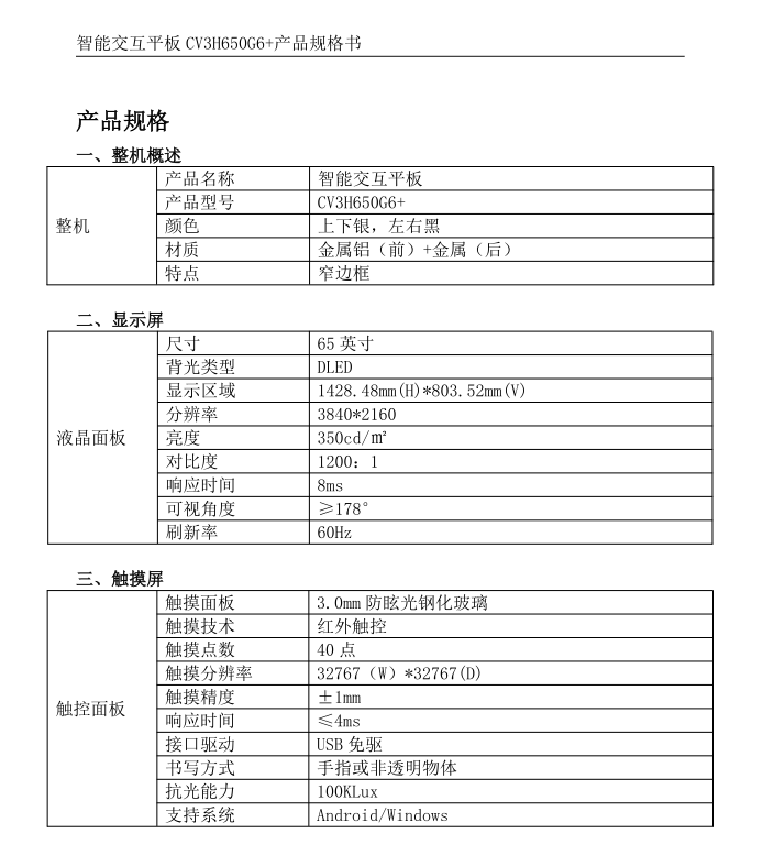 创维(Skyworth)65英寸会议平板CV3H650G6+ 触控一体机、含OPS、含挂墙安装