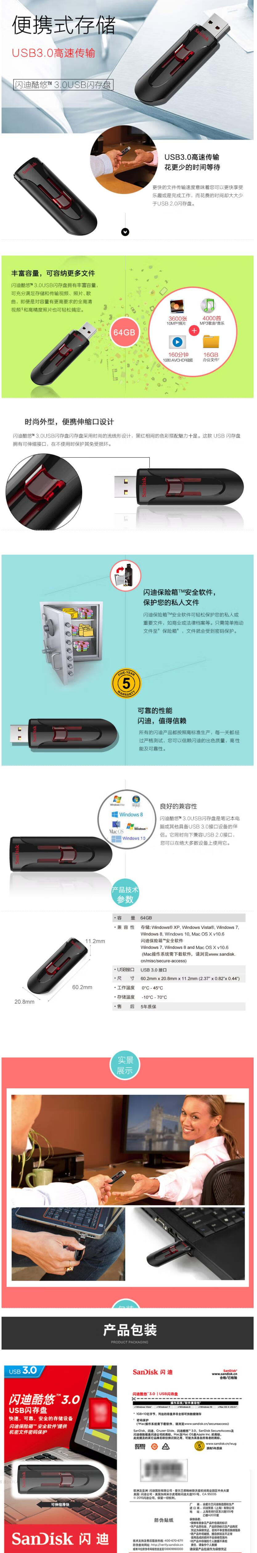 闪迪64GB USB3.0 U盘CZ600