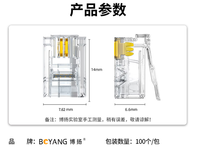 博扬电话水晶头100个装RJ11