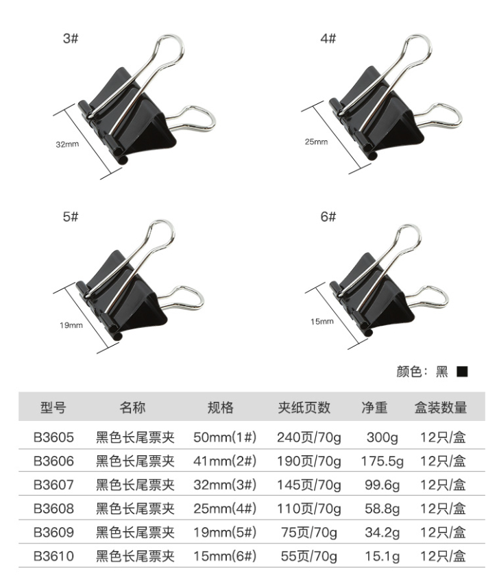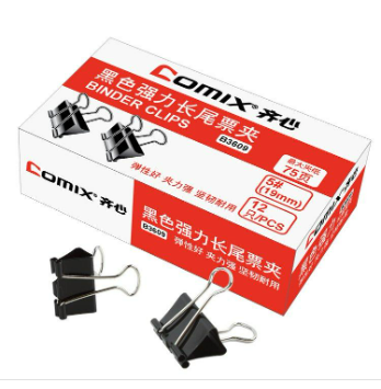 齐心(COMIX)B3609/19mm黑色长尾夹(12个/盒整盒起订)