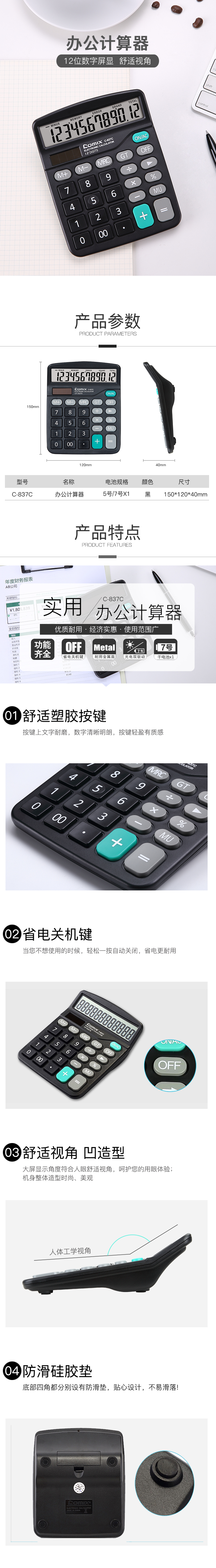 齐心(COMIX)C-837C办公计算器黑