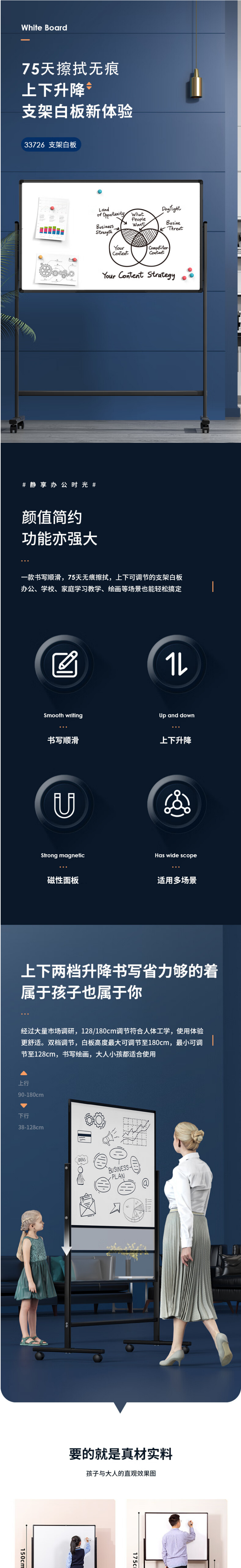 得力150*90cmH型支架式白板33726