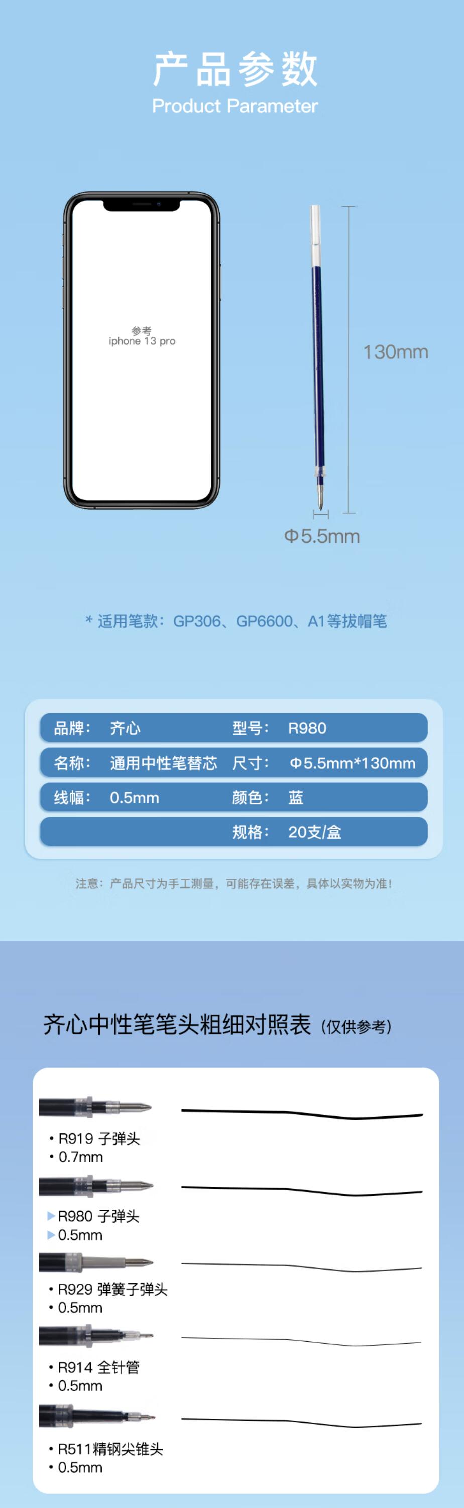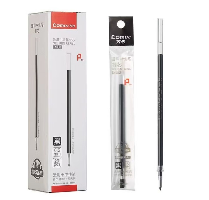 齐心R980通用中性笔替芯0.5mm 黑(20支/盒)