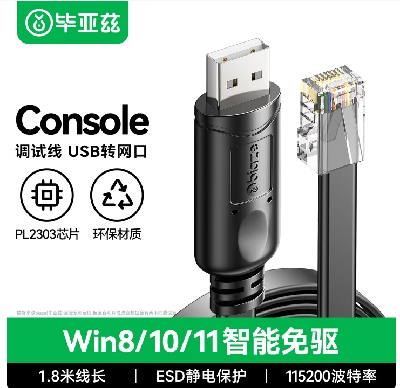 毕亚兹Console调试线 USB转RJ45控制线配置线 1.8米