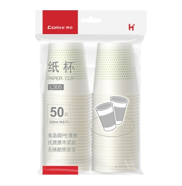 齐心 L305 加厚一次性纸杯8安(220ml)50只装