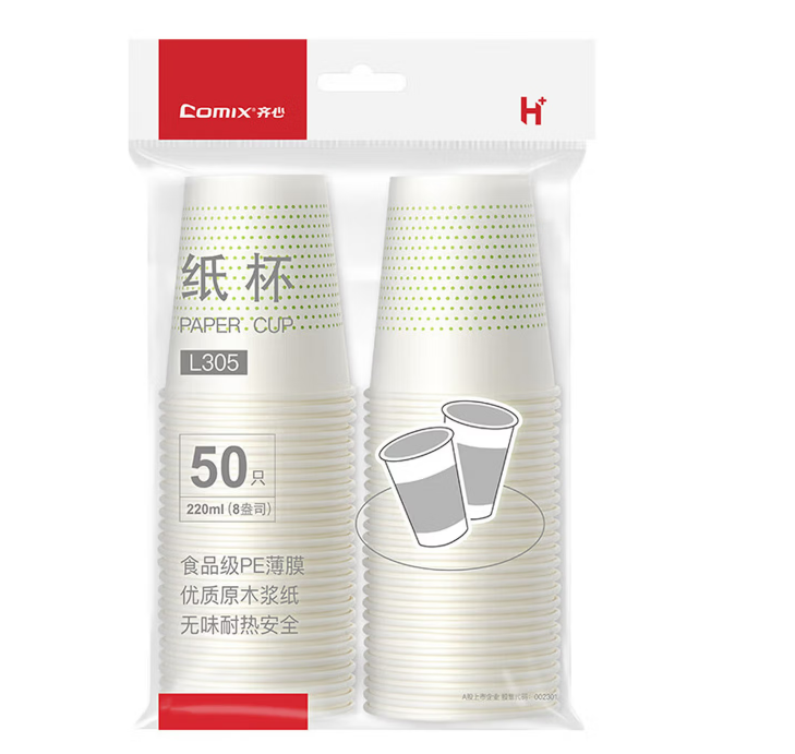 齐心L305 加厚纸杯8安(220m1) 50只/40包/箱