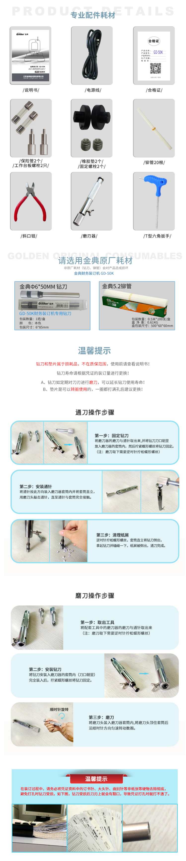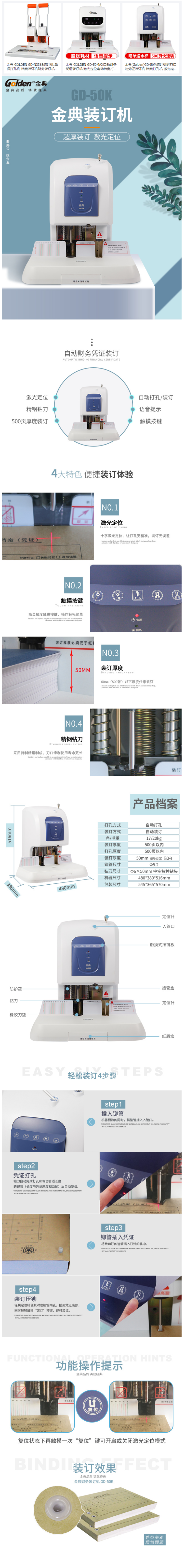 金典(Golden)GD-50K装订机财务凭证装订机 档案打孔机 激光定位电动打孔