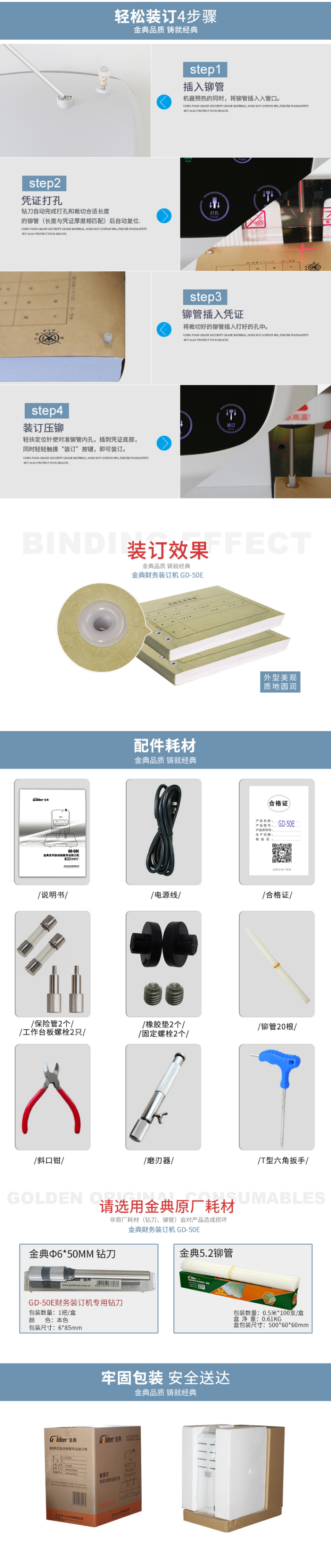 金典 GOLDEN GD-50E装订机液晶 自动财务装订机凭证装订机