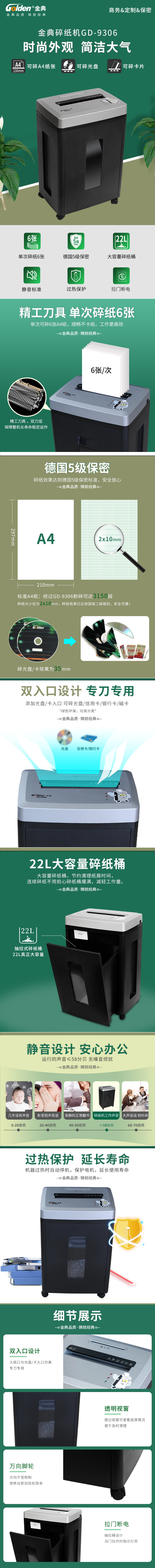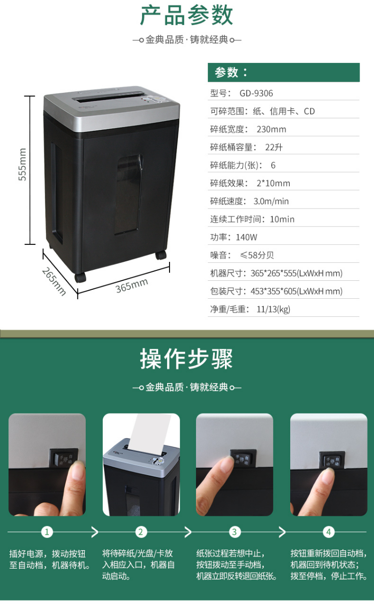 金典 GOLDEN GD-9306碎纸机 商务粉碎机