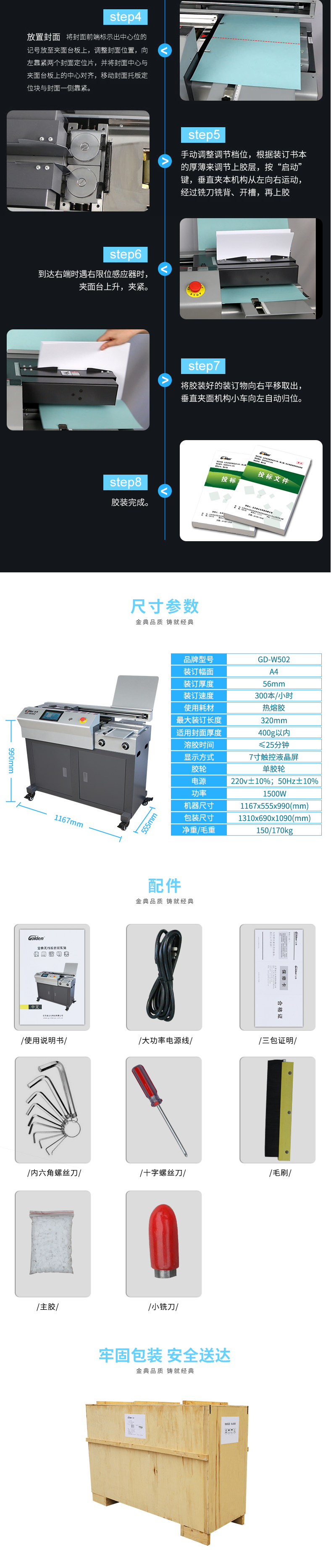 金典(GOLDEN)GD-W502无线胶装机全自动A4热熔标书装订机资料报告装订机