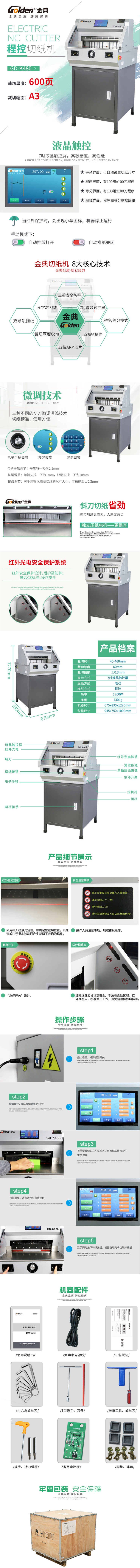 金典 GOLDEN GD-K480切纸机 电动程控切纸机 标书修边切纸机