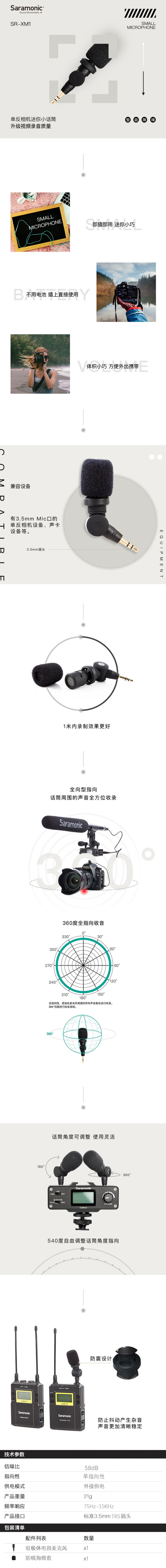 枫笛(Saramonic)麦克风 SR-XM1索尼佳能相机外接迷你麦克风 GoPro大疆灵眸相机Vlog直播拍摄收录音小话筒