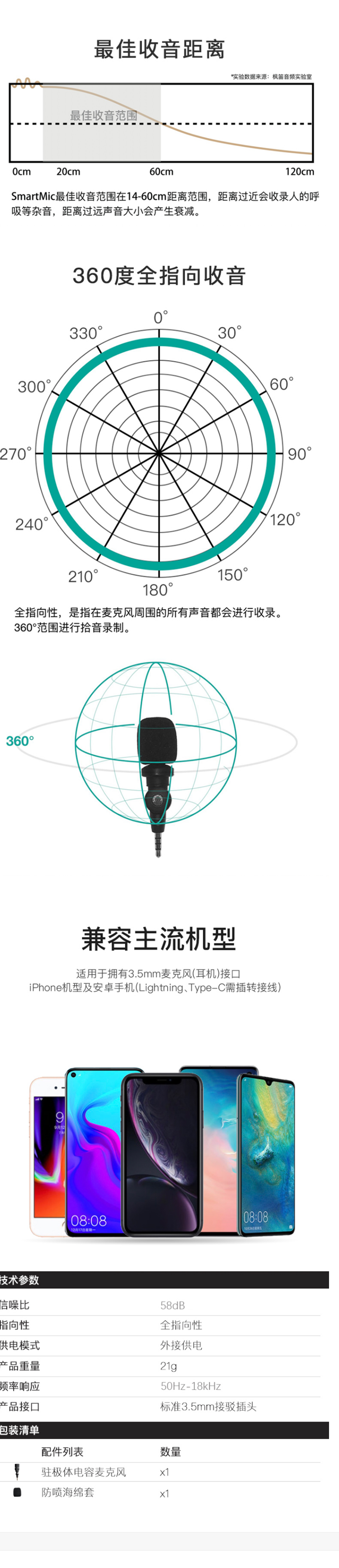 枫笛(Saramonic)麦克风 SmartMic苹果安卓手机收录音小话筒 手机直播Vlog视频拍摄云台稳定器迷你麦克风