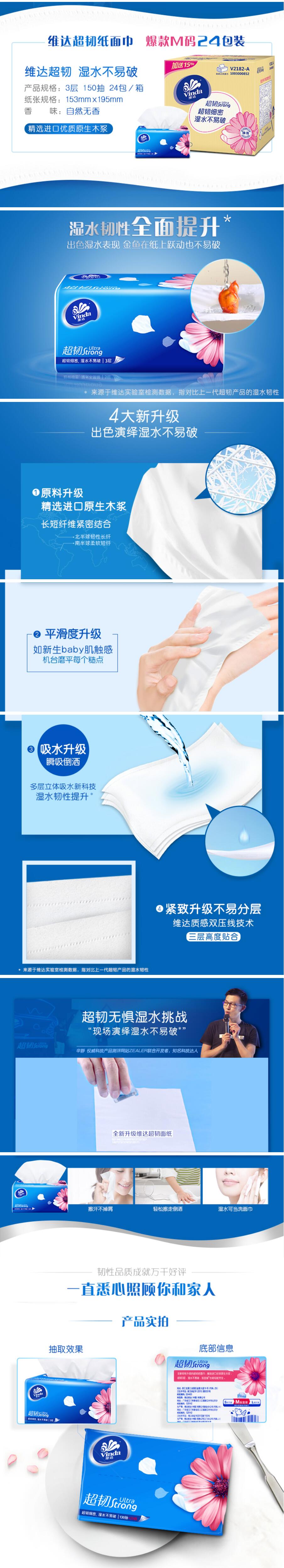 维达超韧抽纸 V2182-A M码 3层150抽 24包/箱 单位:箱