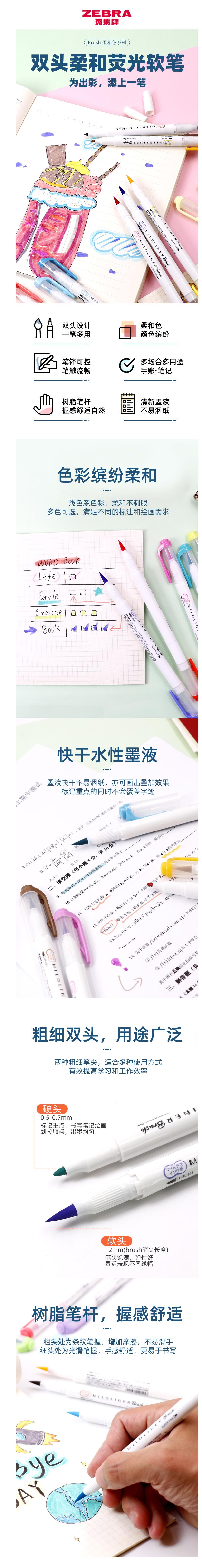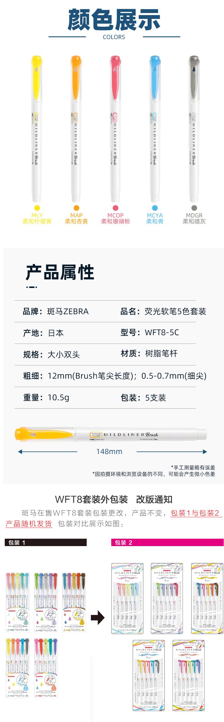 斑马(ZEBRA)WFT8-5C双头彩虹色荧光笔 5色套装