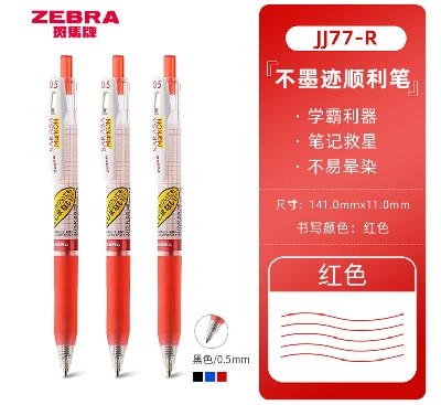 斑马(ZEBRA)JJ77(红色)不墨迹顺利笔0.5mm 12支/盒 单位:盒