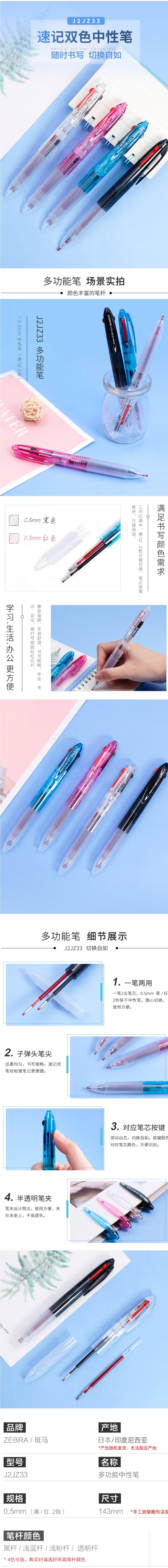 斑马牌 多功能双色笔 蓝杆-J2JZ33-LB 0.5mm 10支/盒