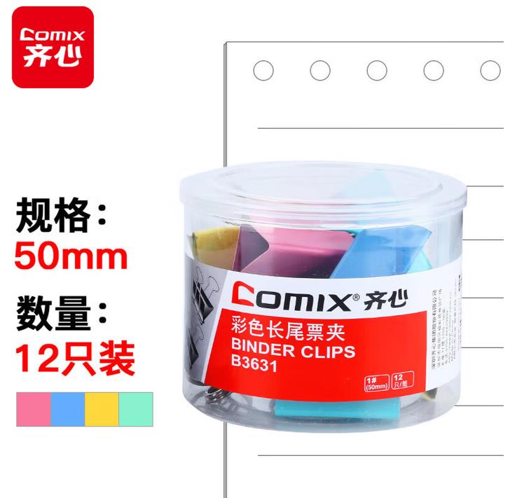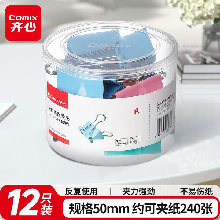 齐心长尾票夹 B3631 1# 50mm 12只/筒